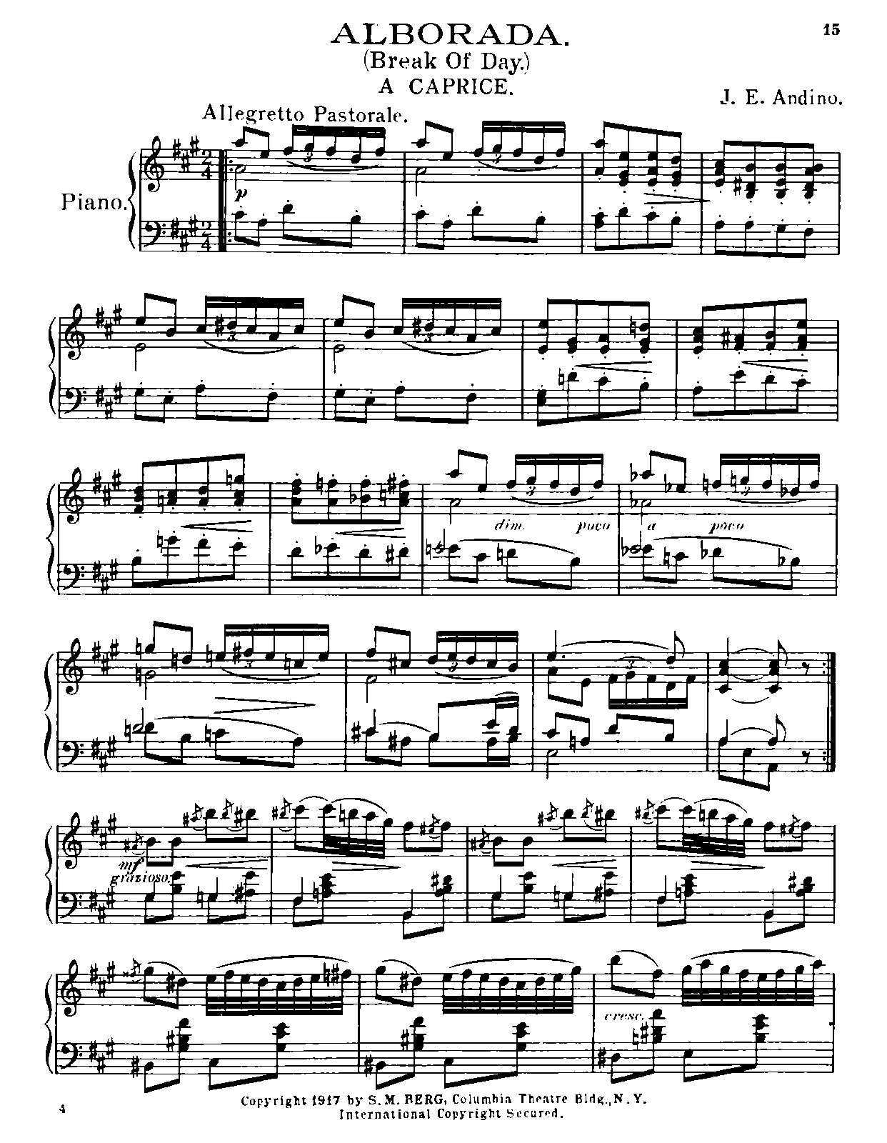 New York: S.M. Berg, 1917. Plate Alborada 4.