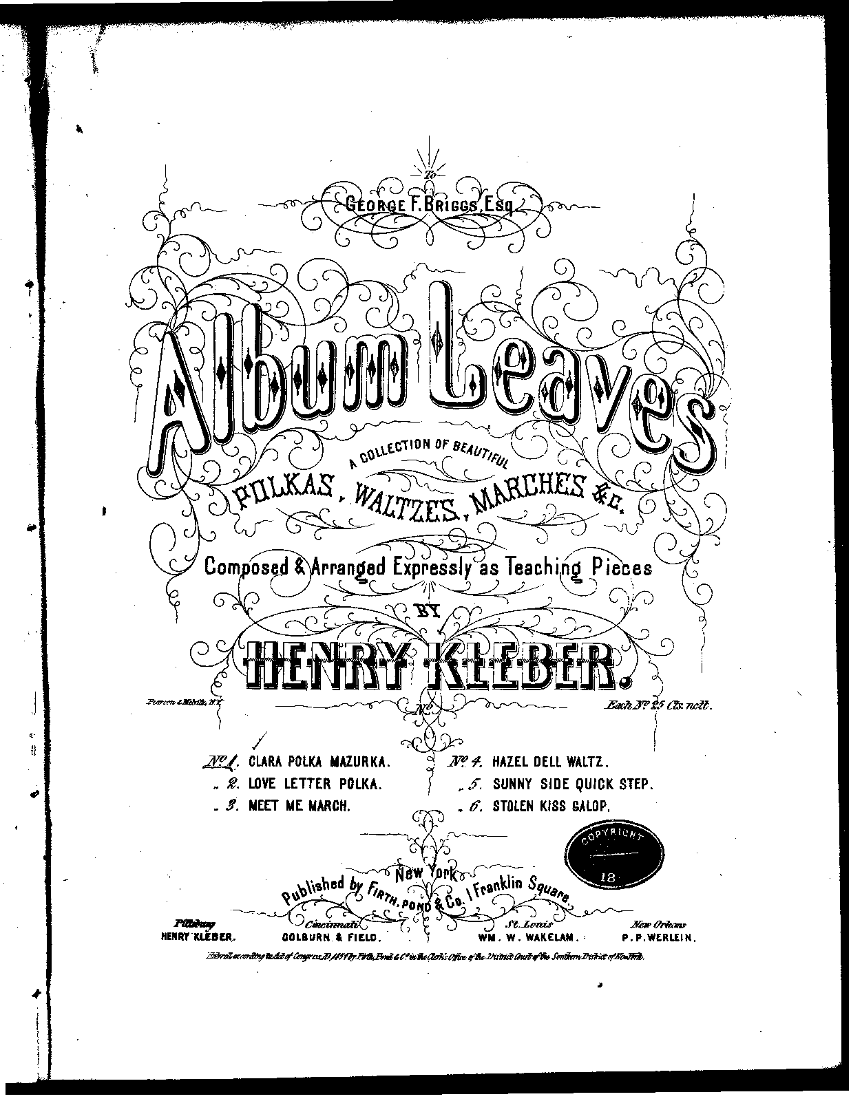 ⇒ 5 more: 2. Love-Letter Polka • 3. Meet Me March • 4. Hazel-Dell Waltz • 5. Sunnyside Quickstep • 6. Stolen Kiss Galop