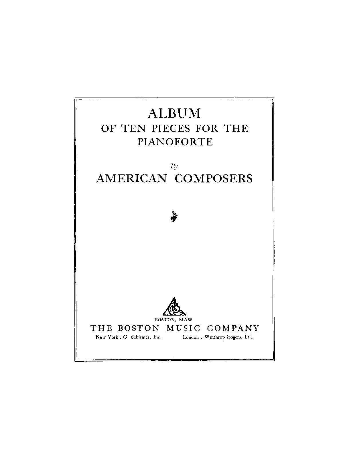 | Work Title | Album of Ten Pieces for the Pianoforte by American Composers |