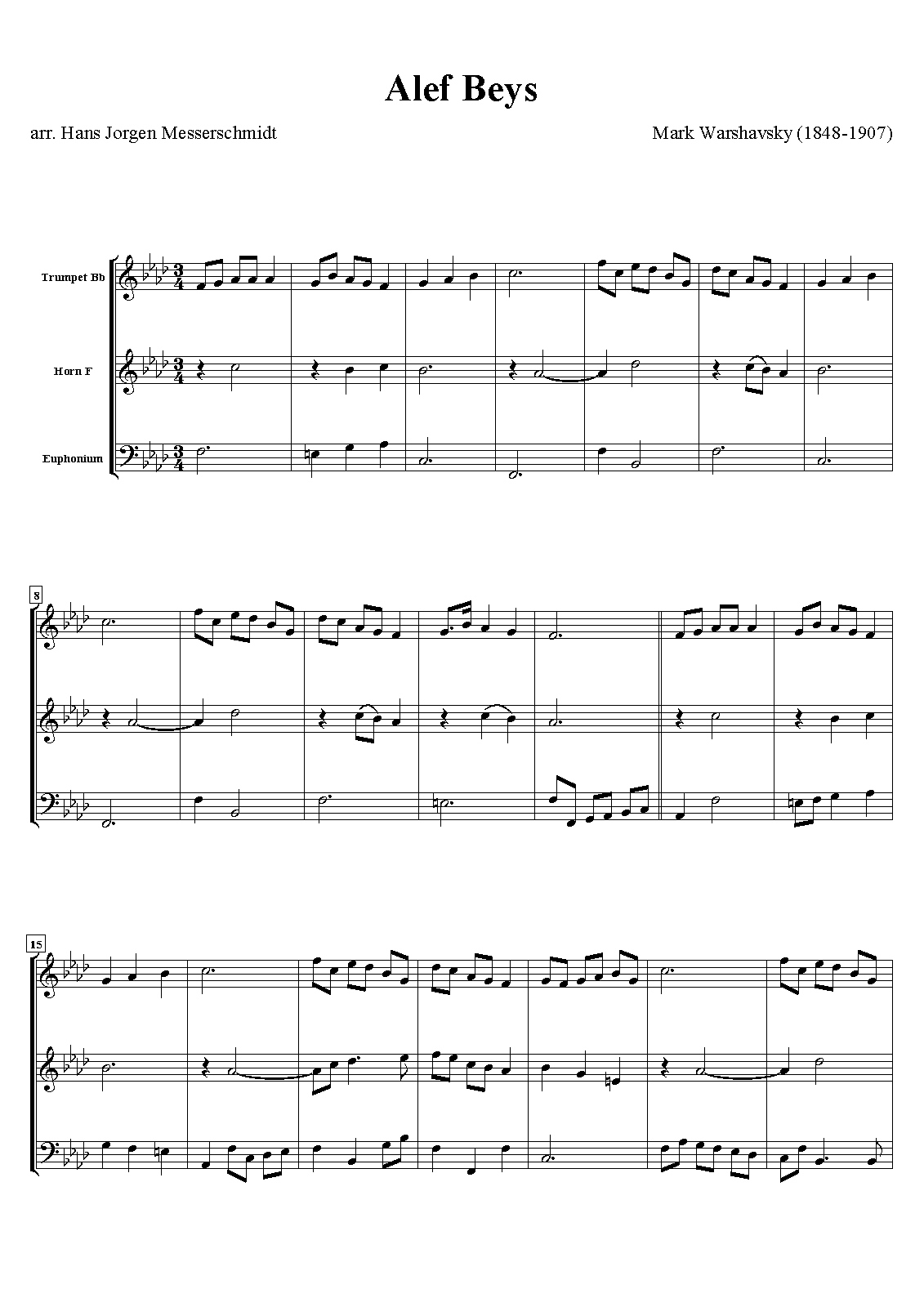 Warshawsky, when he wrote his songs, accompanied them with piano. The first printed version of them, the collection Yiddishe Volkslider ((sometimes with variant spellings, i.e. Judishe Folklider), Jewish People's songs, Kiev, 1900), may or may not have had a piano accompaniment part. To be confirmed.
