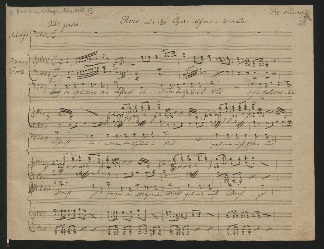 | Extra Information | The overture to this opera (here only in Schubert's own piano reductions) was used as the overture to Rosamunde, D.797 in this edition, because Schubert did so before he replaced it by the overture to Die Zauberharfe, D.644. |
