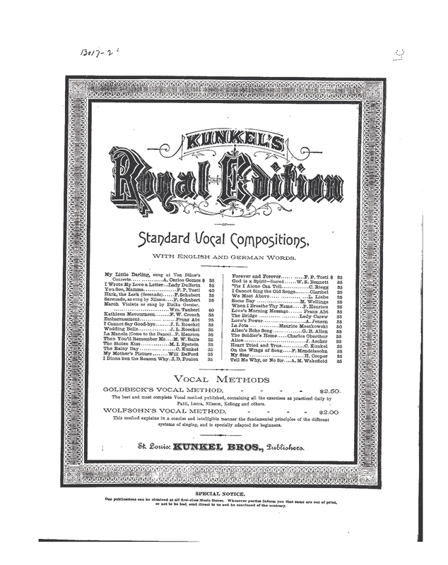| Genre Categories | Songs; For voice, piano; For voices with keyboard; |