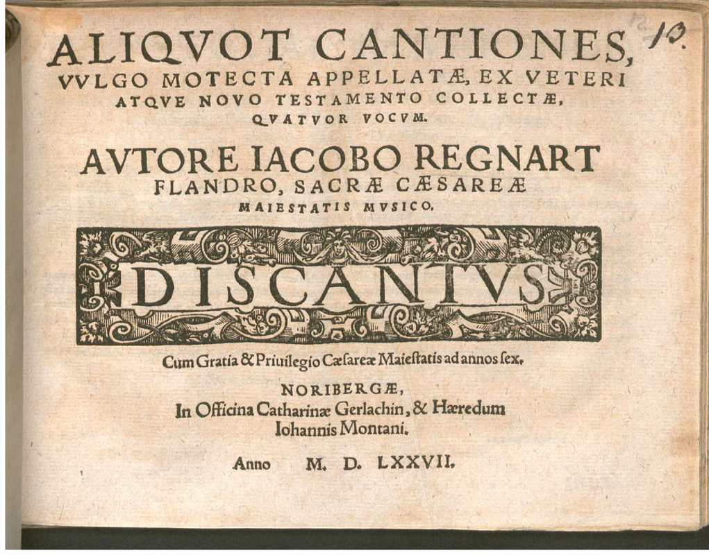 | Alternative. Title | Aliquot Cantiones, vulgo motecta appellatae, ex veteri atque Novo Testamento collectae, quatuor vocum |