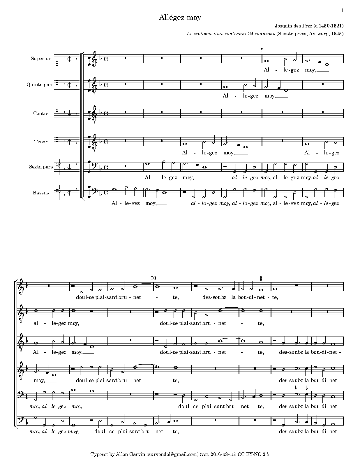 | First Publication | 1545 in Le septisme livre contenant 24 chansons a 5 et 6 (Susato press, Antwerp) |
