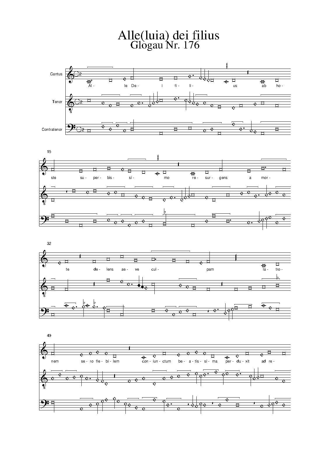 | Work Title | Alle Dei filius ab hoste superbissimo |