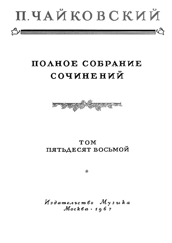 First Publication. 1967 - Moscow: Muzyka (in vol.58 of Pyotr Tchaikovsky: Complete Collected Works, p.4–5). Plate 3534