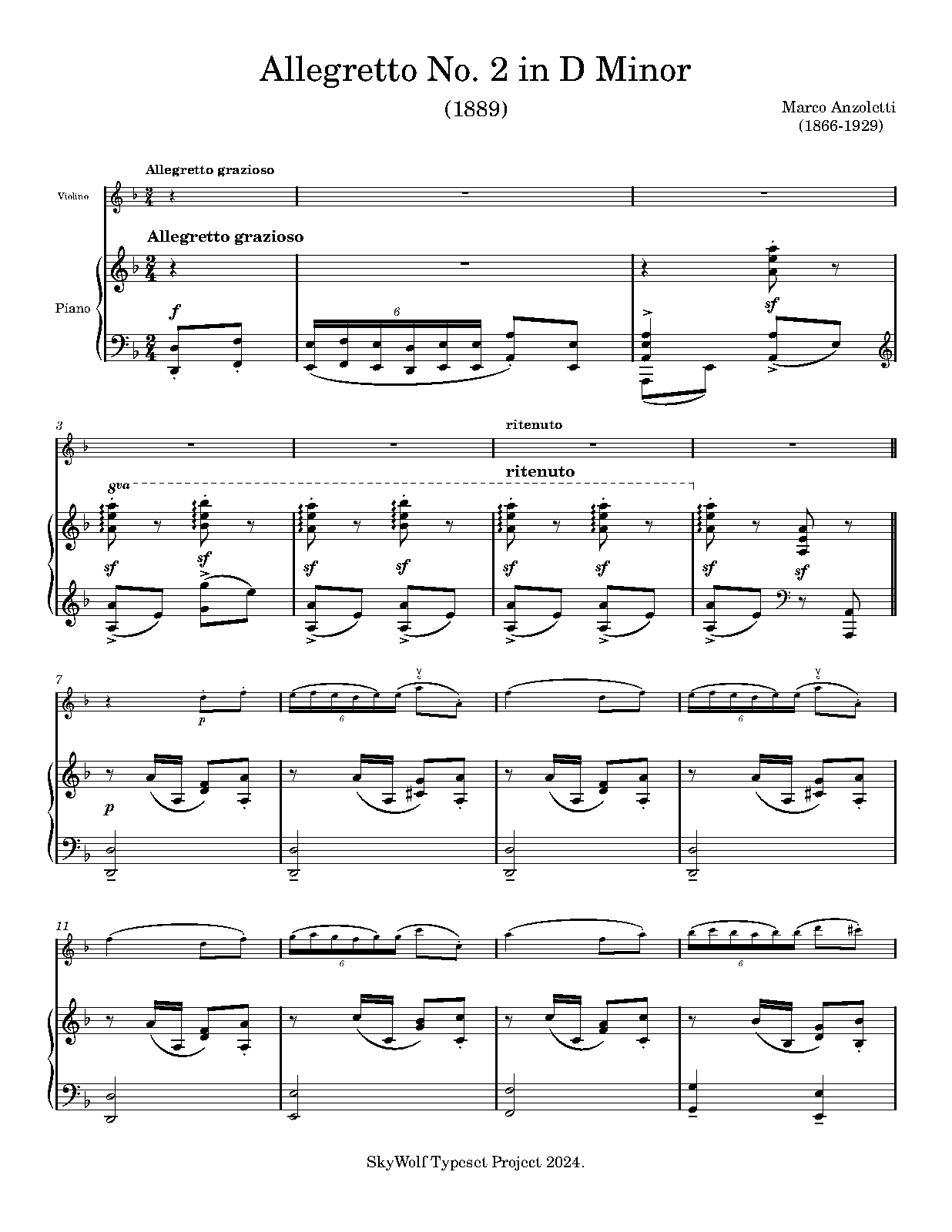 | Genre Categories | Allegrettos; For violin, piano; Scores featuring the violin; |