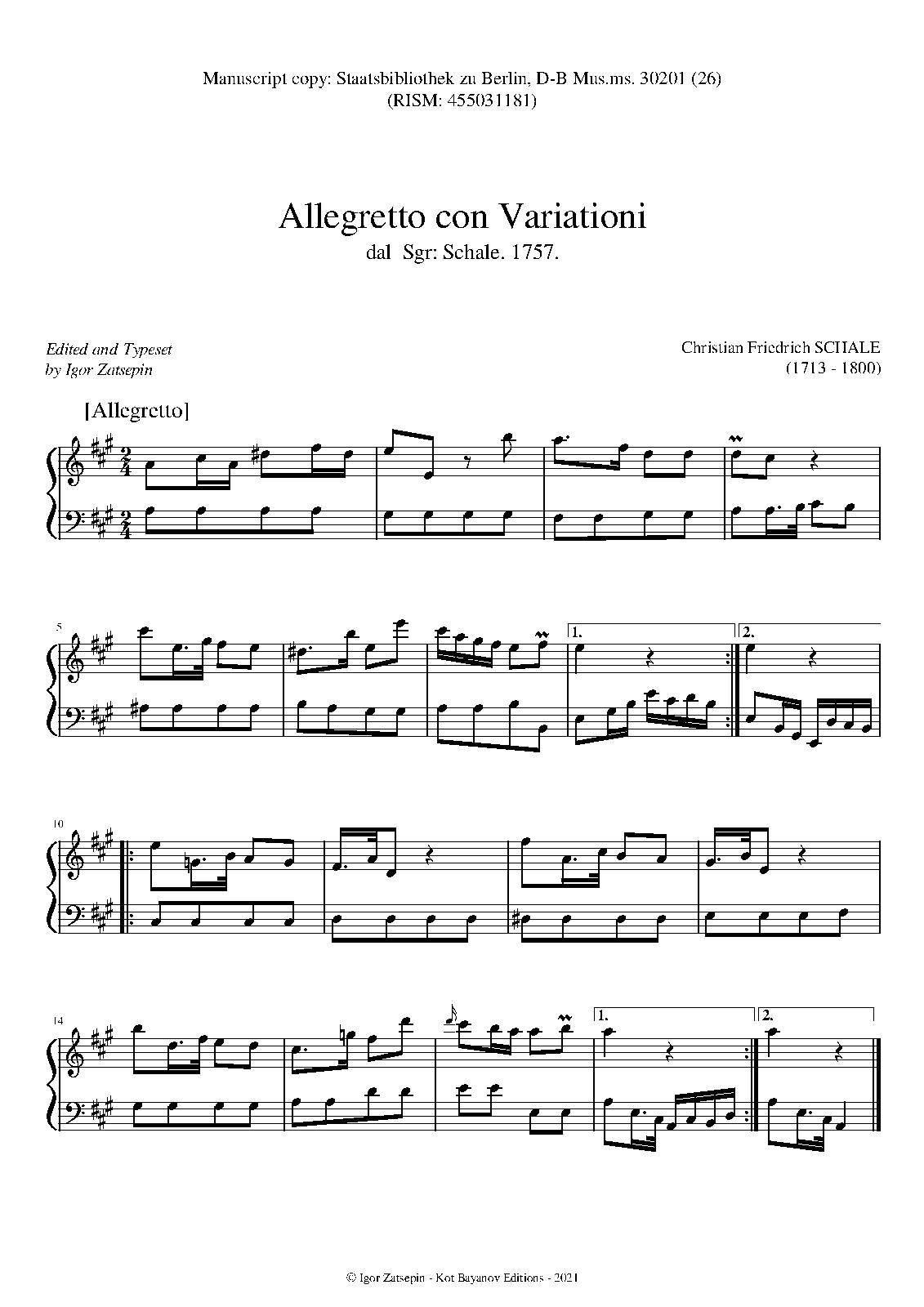 Alternative. Title Allegretto con Variationi dal Sgr: Schale. 1757.