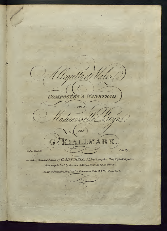 Alternative. Title Allegretto et Valce composees a Wanstead