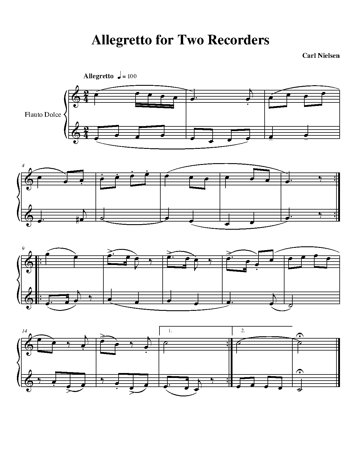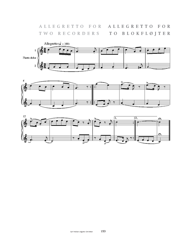 Nielsen's Allegretto for two recorders was composed at the request of C.M. Savery, who published it in his recorder primer of 1931.