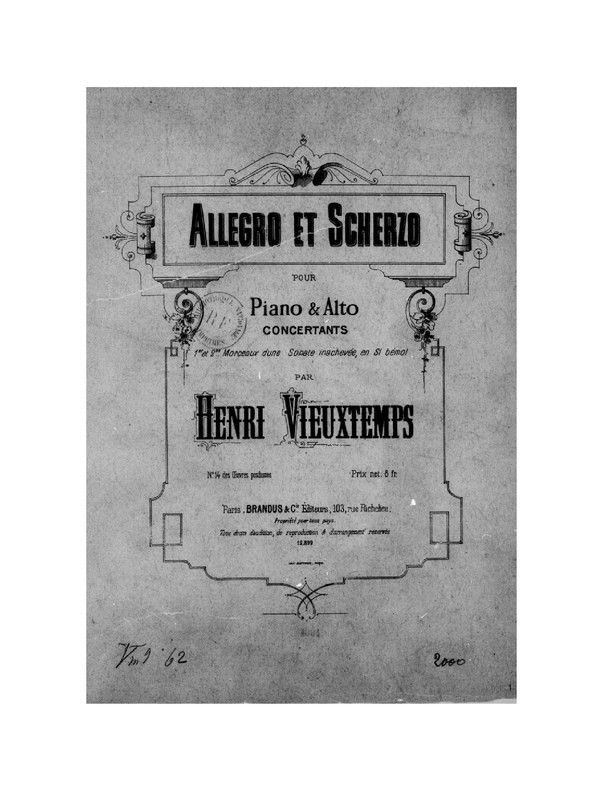 | Genre Categories | Allegros; Scherzos; For viola, piano; |
