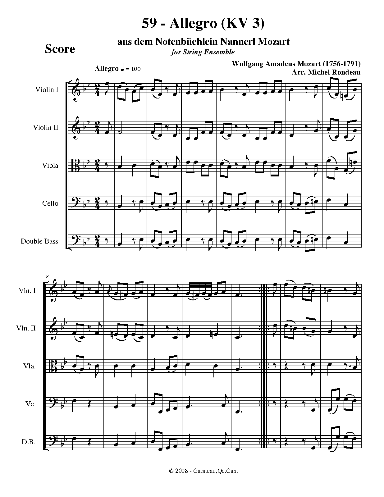 Name Translations Allegro en si bemol mayor, KV 3 (Mozart); Allegro K 3; Allegro en si bémol majeur, KV 3