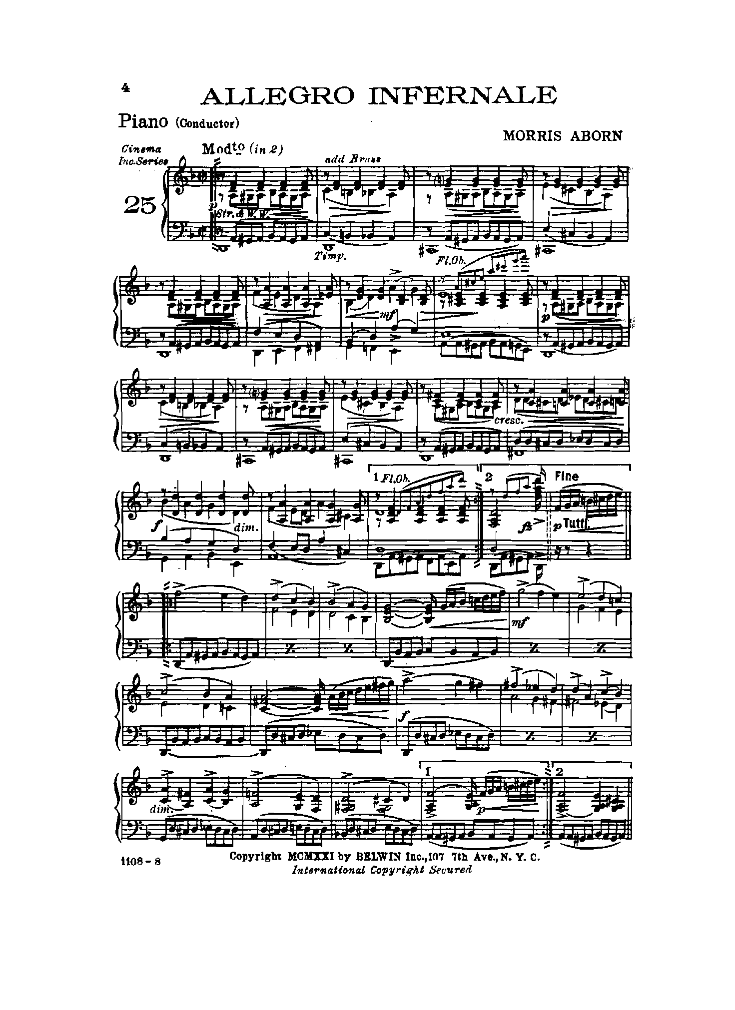 | Extra Information | Intended for use as accompaniment for silent movies. Published under the pseudonym Morris Aborn. |