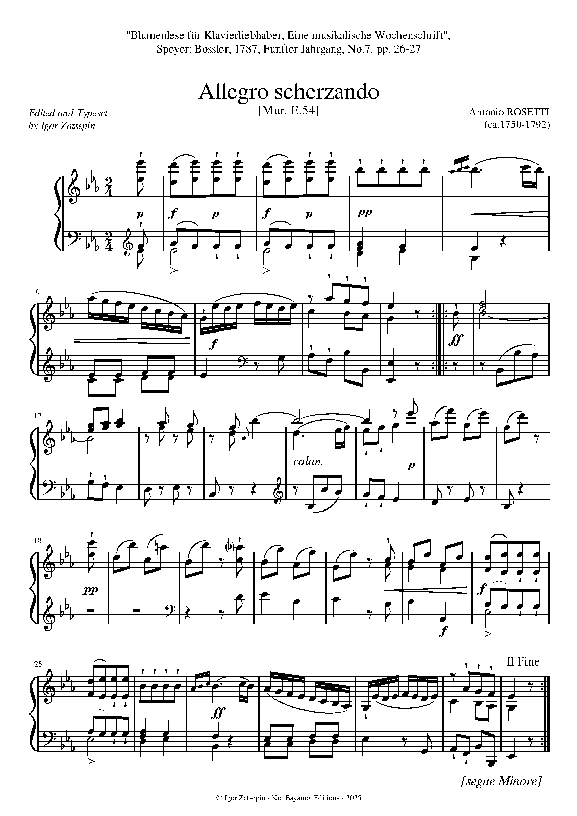 | Extra Information | "Blumenlese für Klavierliebhaber...", Speyer: Bossler, 1787 |
