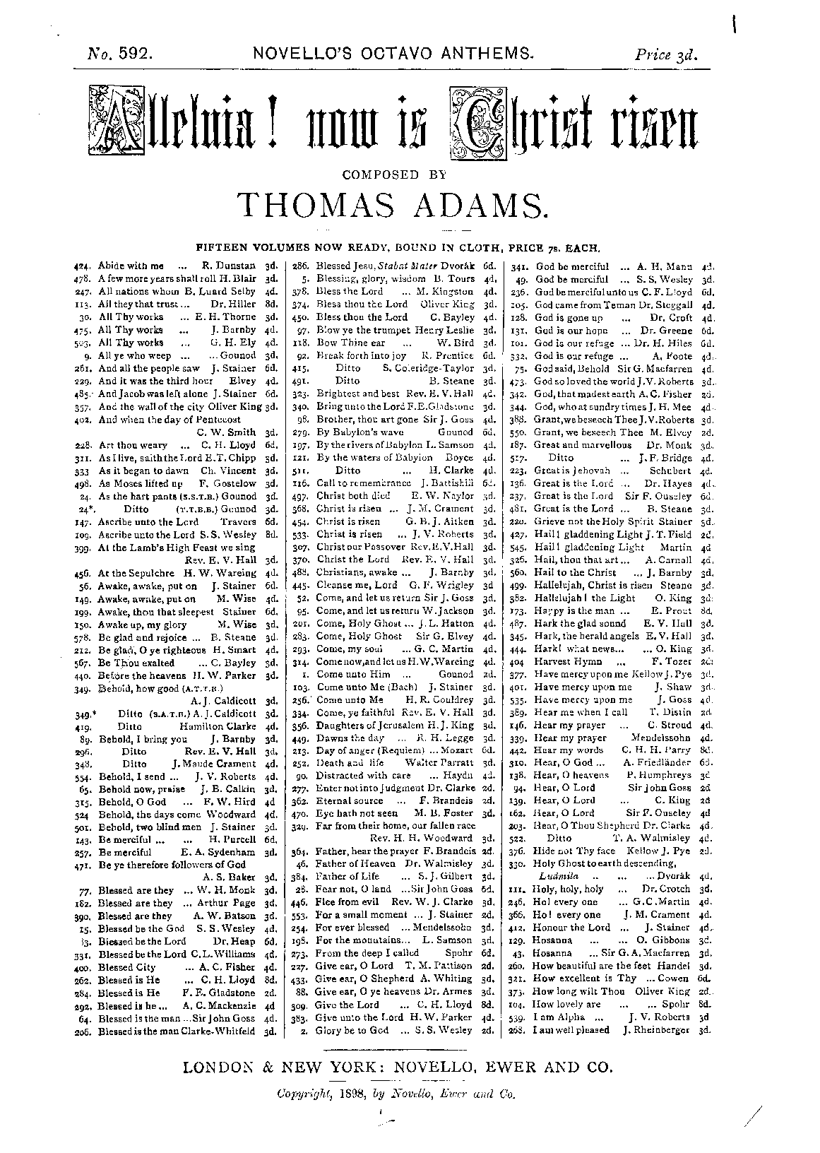 | Genre Categories | Anthems; Religious works; For mixed chorus, organ; |