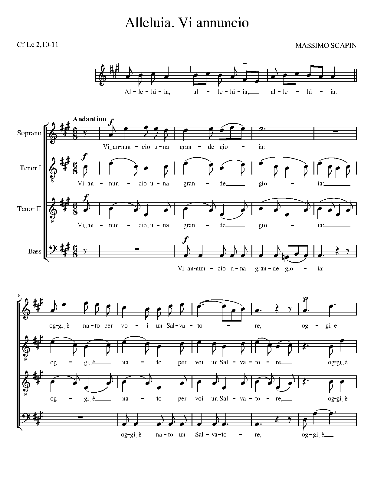 | Work Title | Alleluia 'Vi annuncio' |