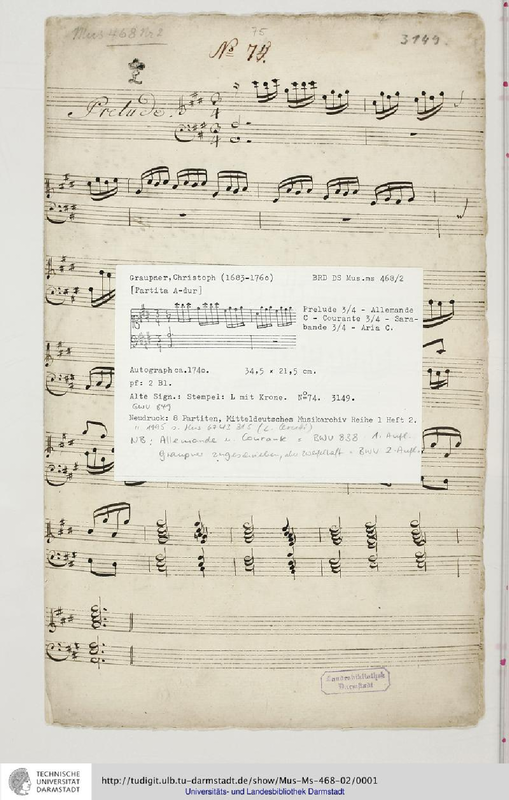 Opus/Catalogue NumberOp./Cat. No. GWV 849 ; (BWV 838, Nos.2-3) ; (BWV App C, S.708) ; (BWV 838 / Anh.III 182‑>)