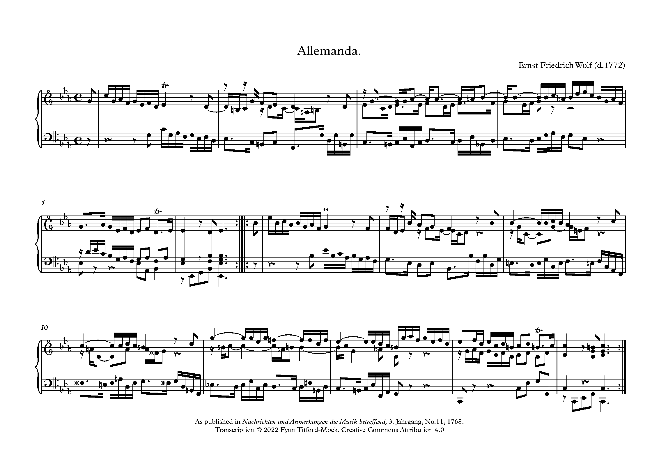 | First Publication | 1768 in Nachrichten und Anmerkungen die Musik betreffend, 3. Jahrgang, No.11 |