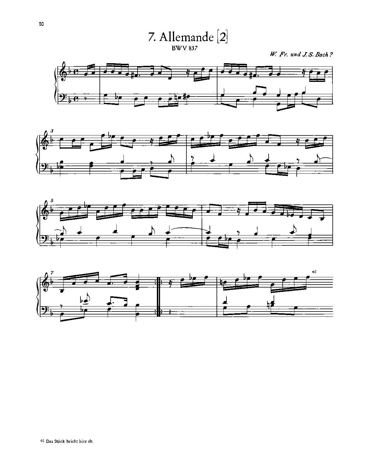 1. Prelude or Allemande (Largo, 15 bars, J.S. Bach: BWV 837, Incomplete)