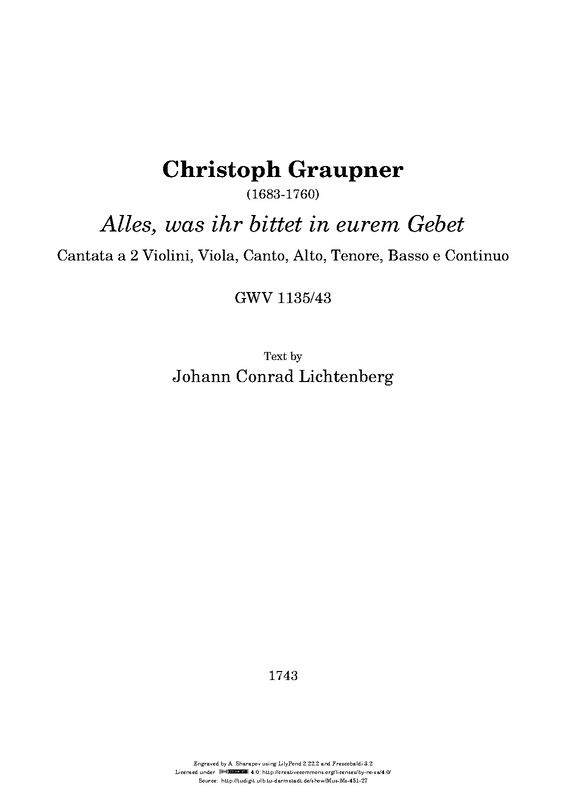 | Opus/Catalogue NumberOp./Cat. No. | GWV 1135/43 |