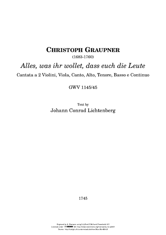 | Opus/Catalogue NumberOp./Cat. No. | GWV 1145/45 |