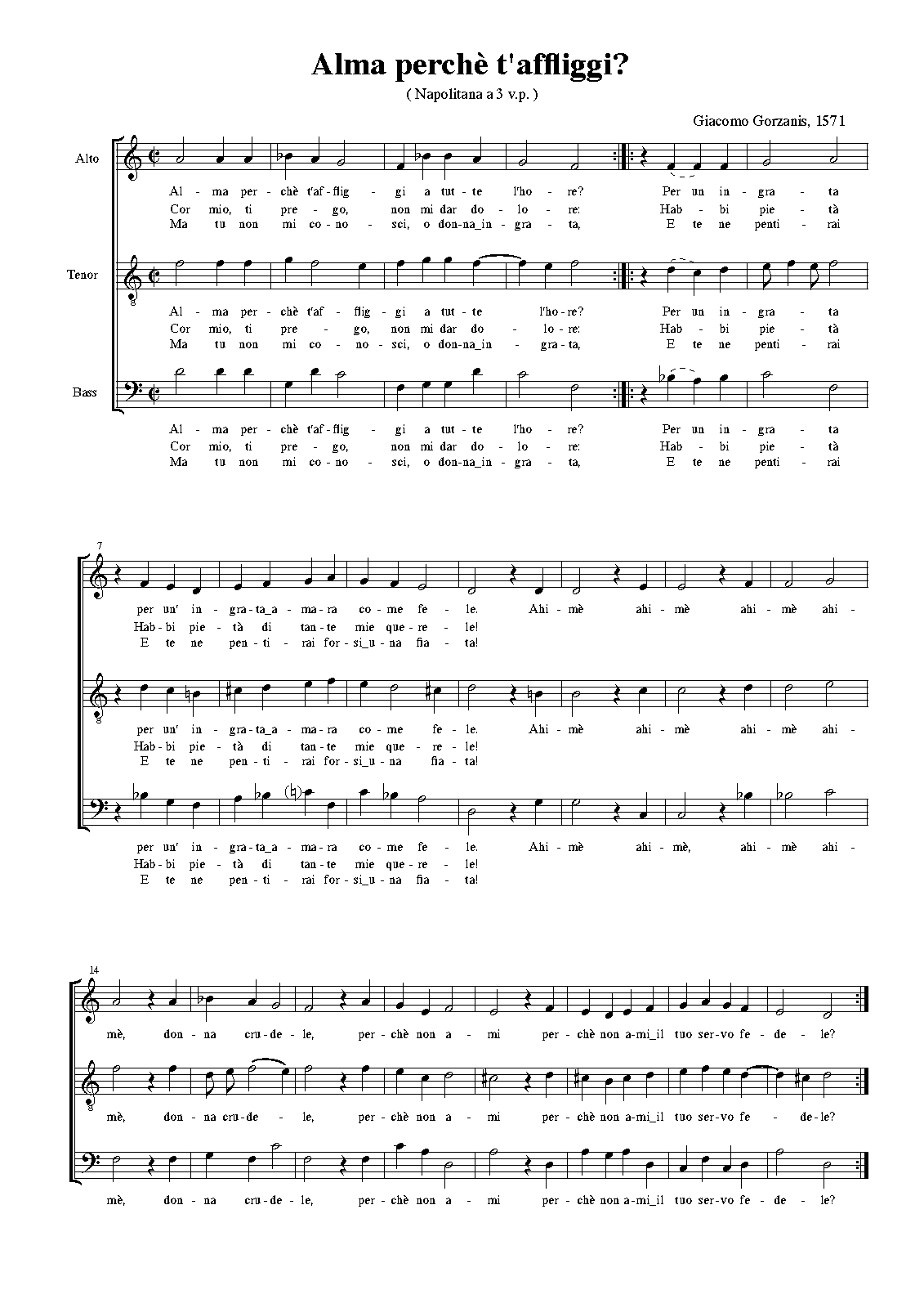 | Work Title | Alma perchè t'affliggi? |