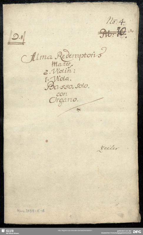 A manuscript set of parts for the complete 16 Antiphons is dated "1732" which proves their existence at least two years before their publication in 1734.