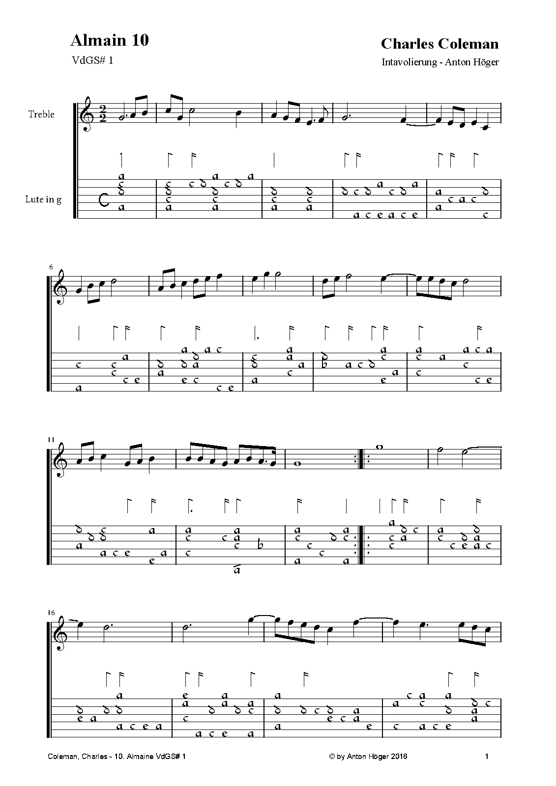 | Work Title | Almain in C major, VdGS 1 |