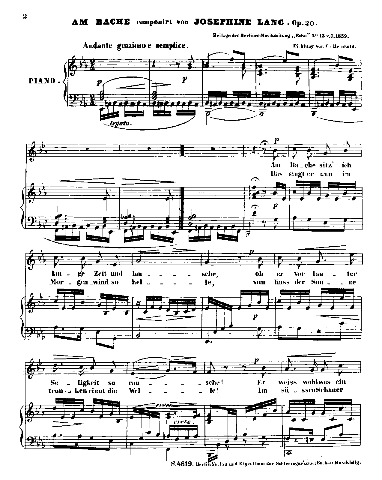 | Text Incipit | Am Bache sitz' ich lange Zeit und lausche |