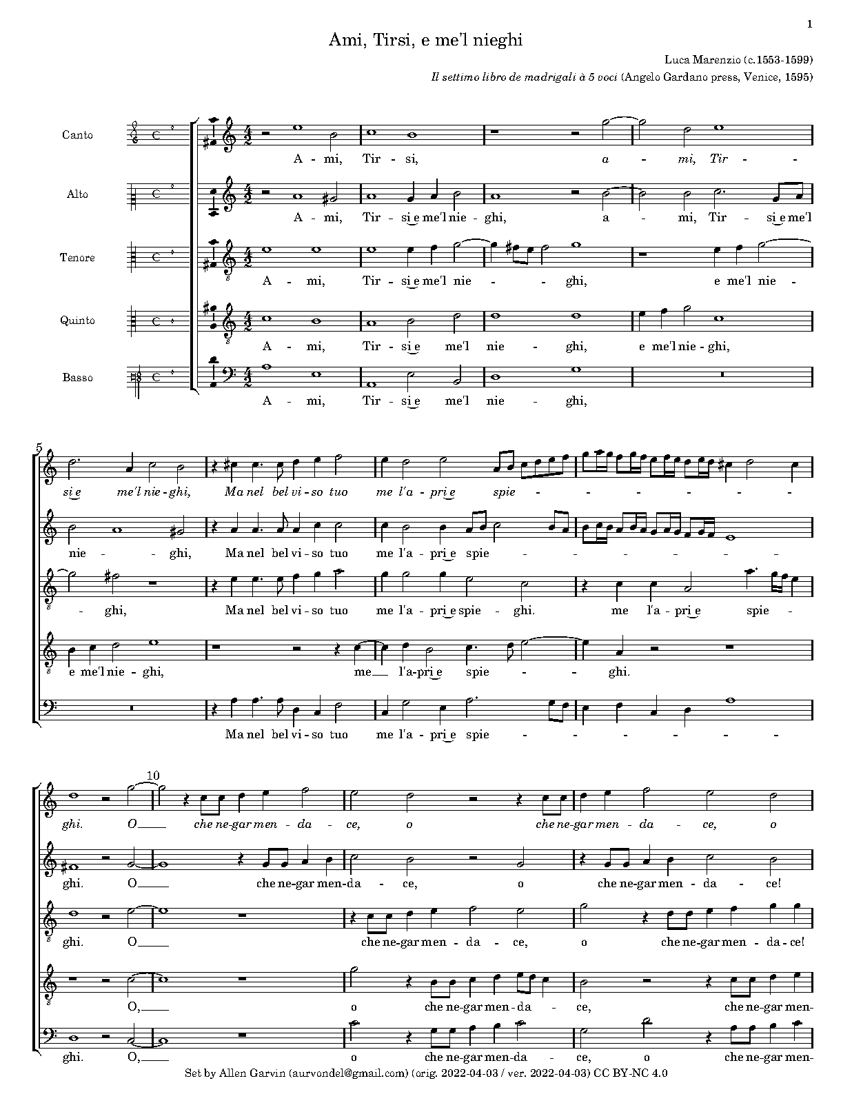 | First Publication | 1595 in Il settimo libro de madrigali a cinque voci |