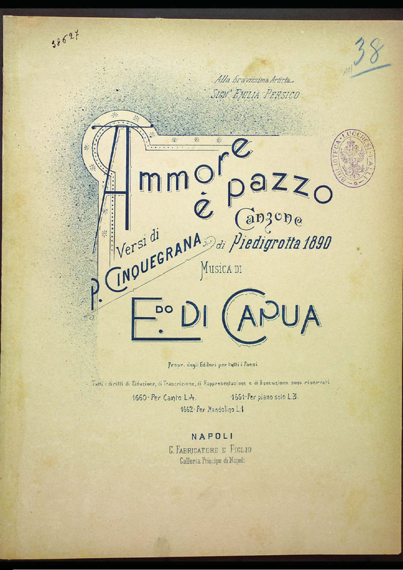 | First Performance. | 1890-09-07 – Naples, Festa di Piedigrotta |