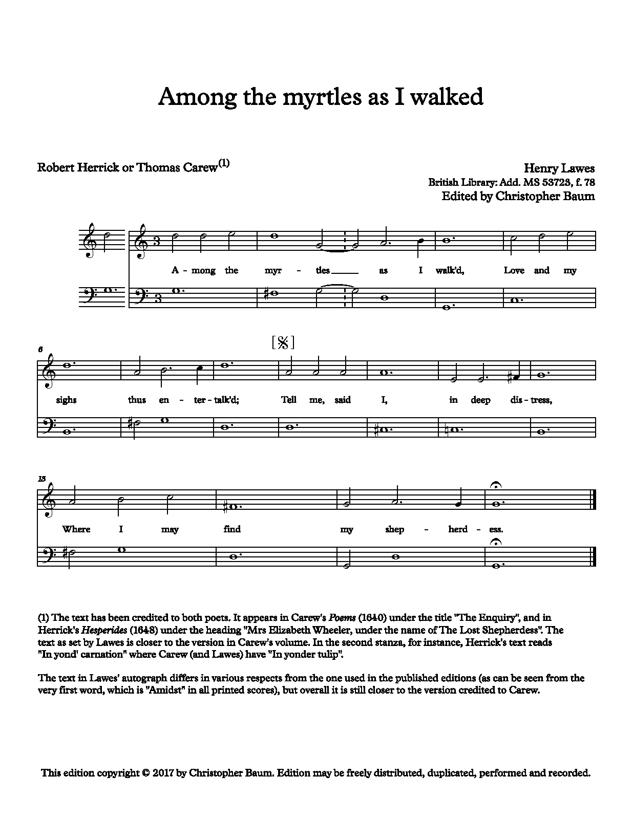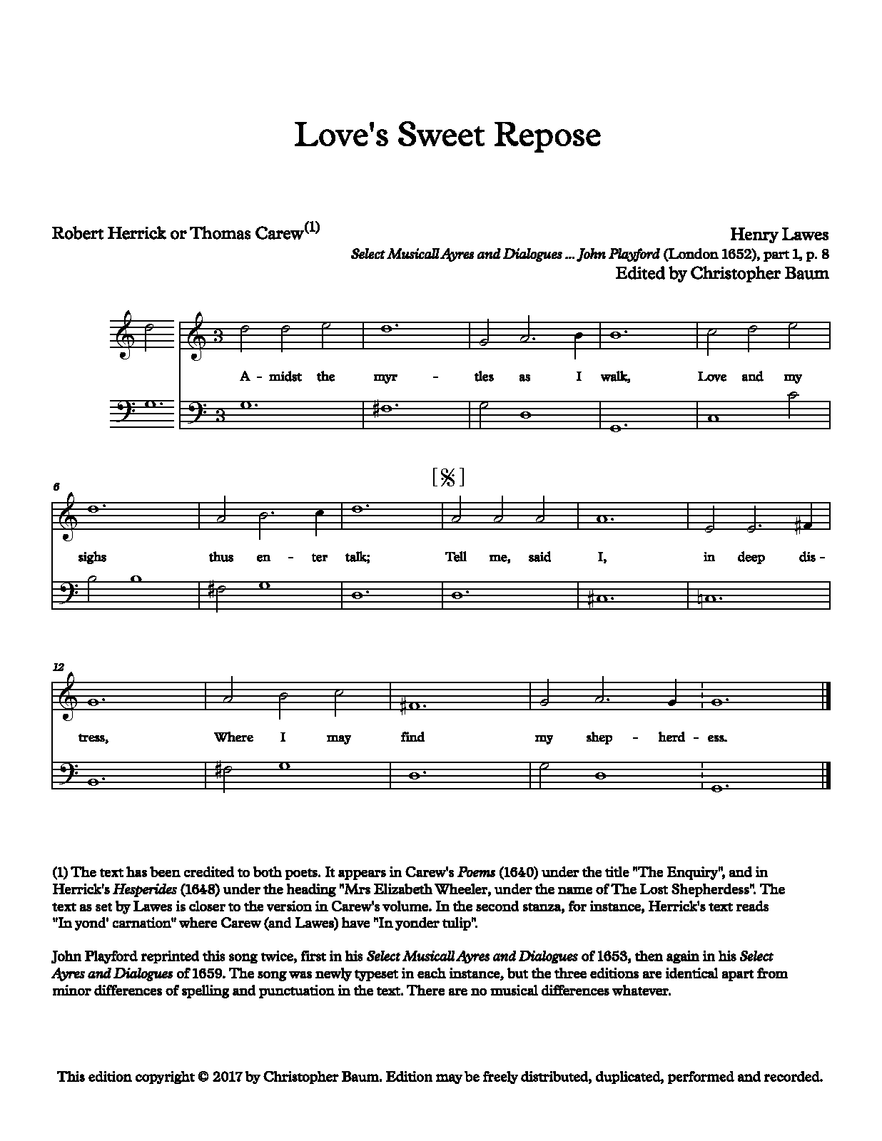 | First Publication | 1669 in The Treasury of Musick, Ayres and Dialogues |