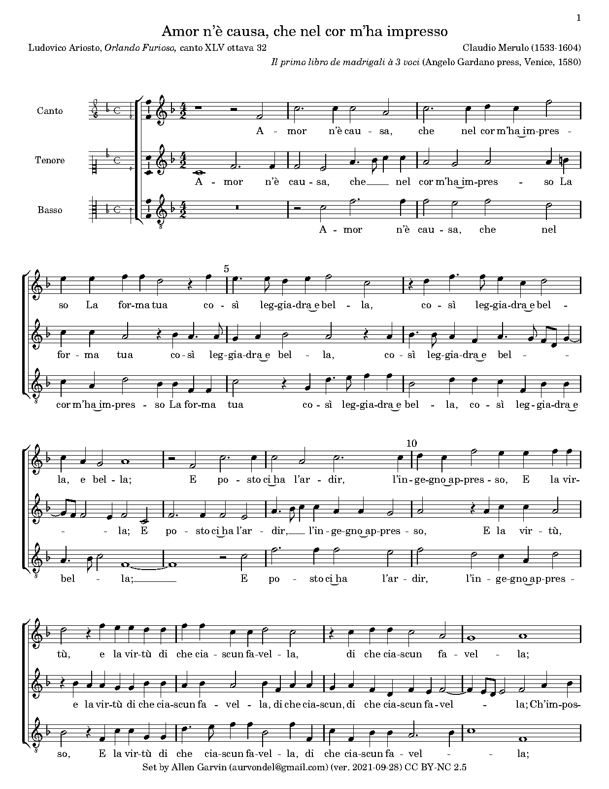 | First Publication | 1580 in Il primo libro de madrigali à 3 voci (Venice: Angelo Gardano) |