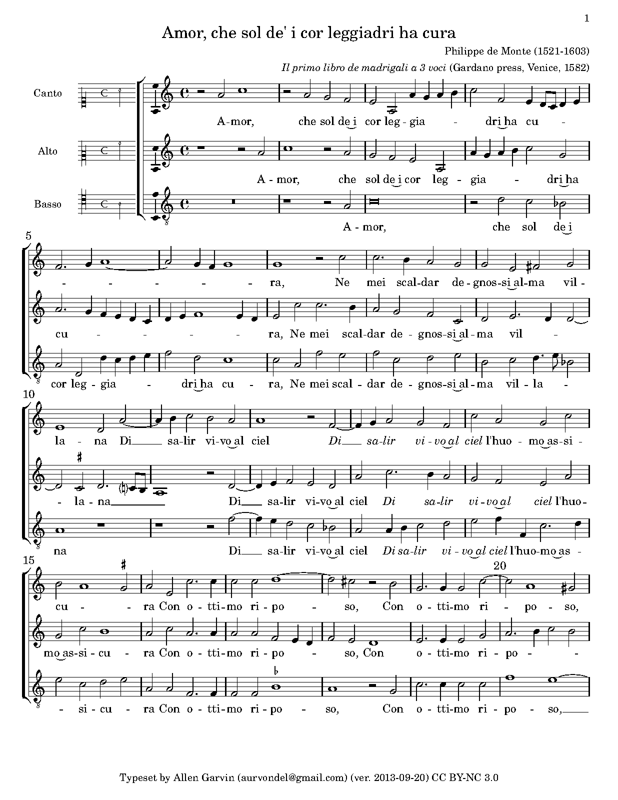 | First Publication | 1582 in Madrigali a 3 voci, Libro 1 (No.1) |