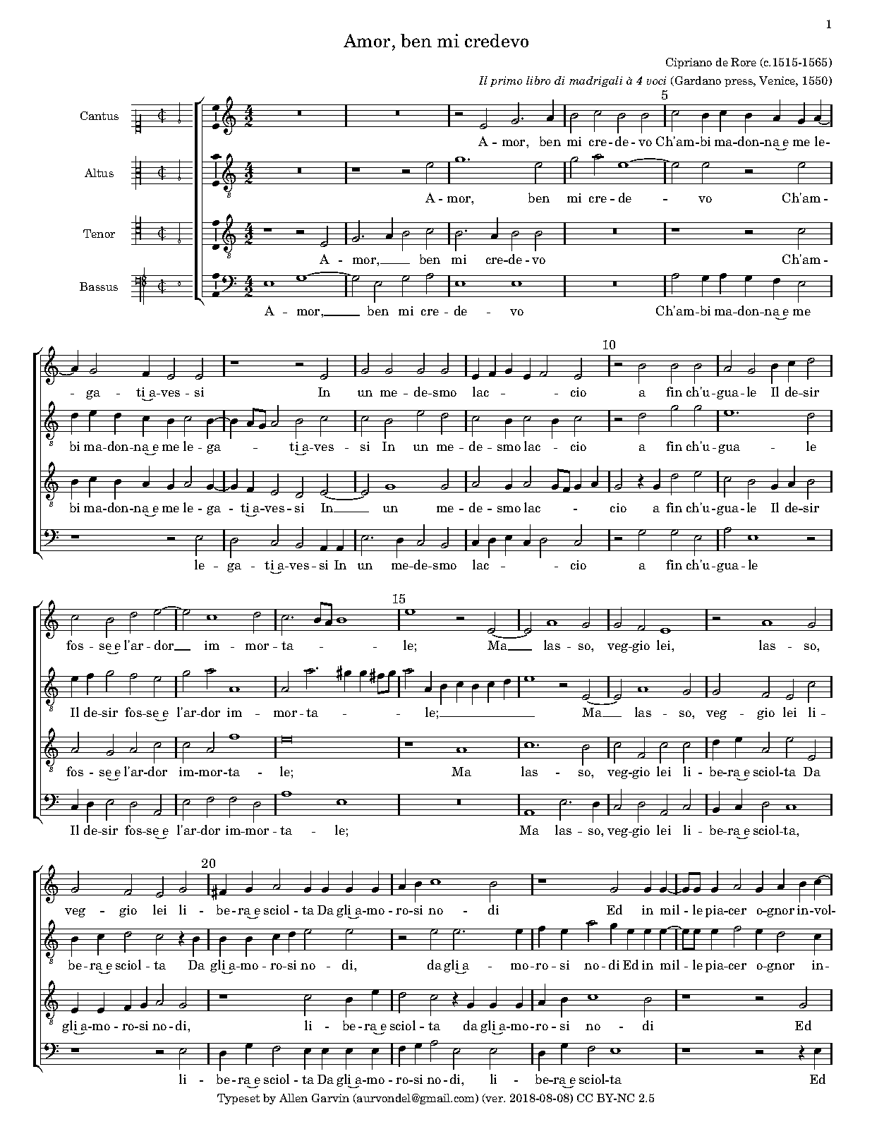 | First Publication | 1550 in Madrigali a 4 voci, Libro 1 |