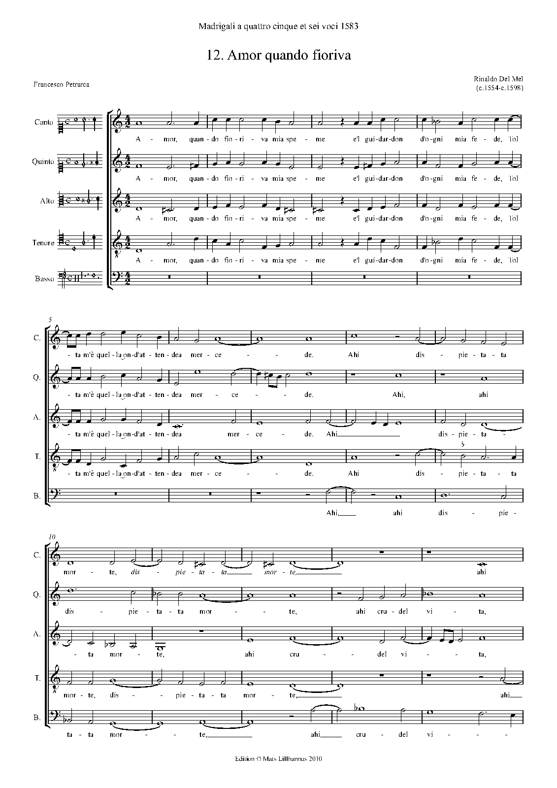 | First Publication. | 1583 in Madrigali a quattro, cinque et sei voci (No.12) |