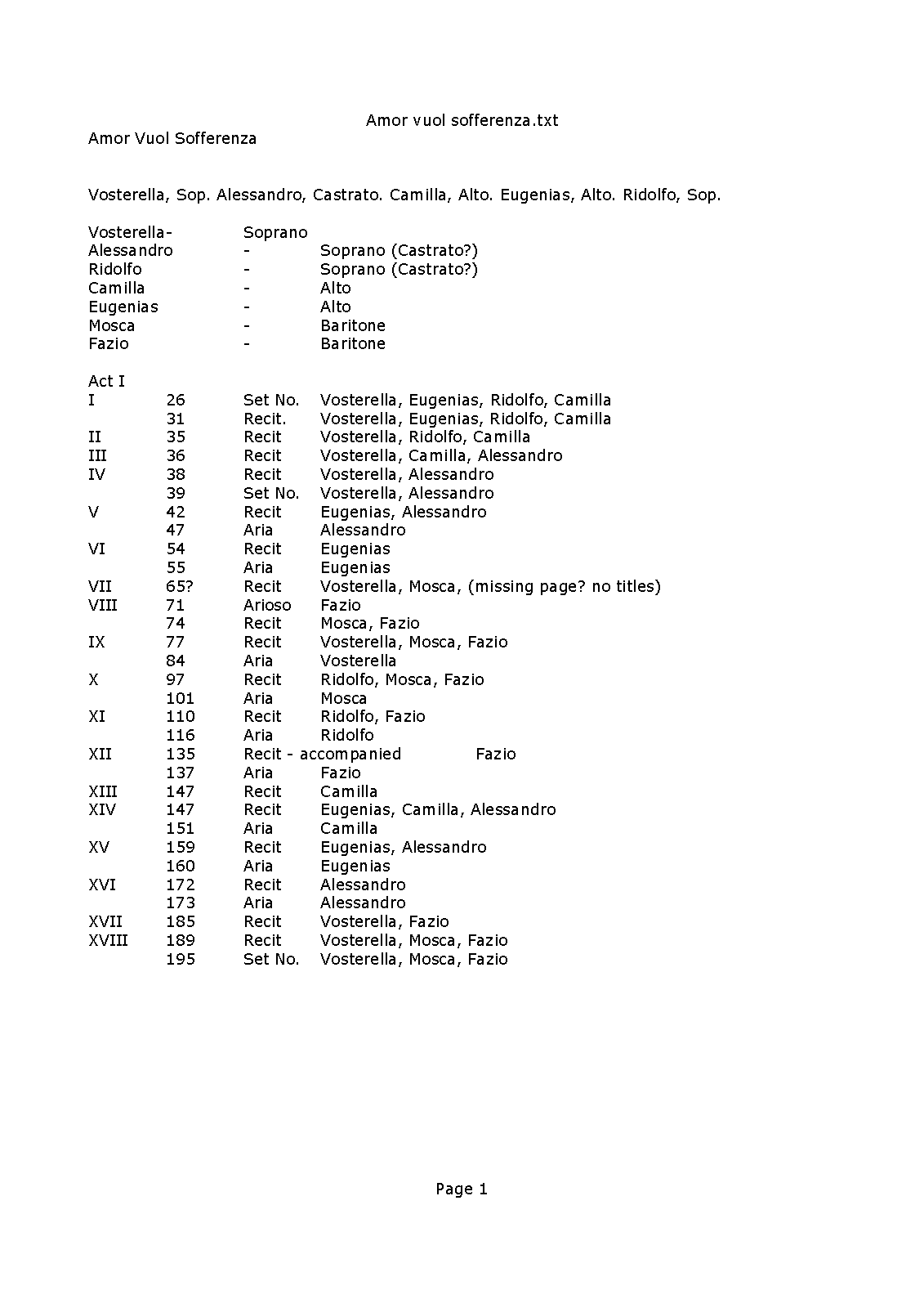 | Work Title | Amor vuol sofferenza [La frascatana; Il cioè] |