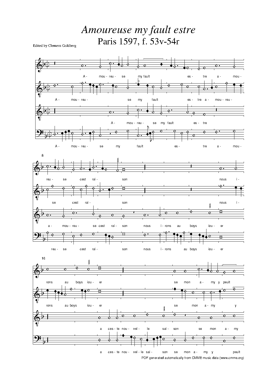 | Genre Categories | Chansons; Songs; For 4 voices; |