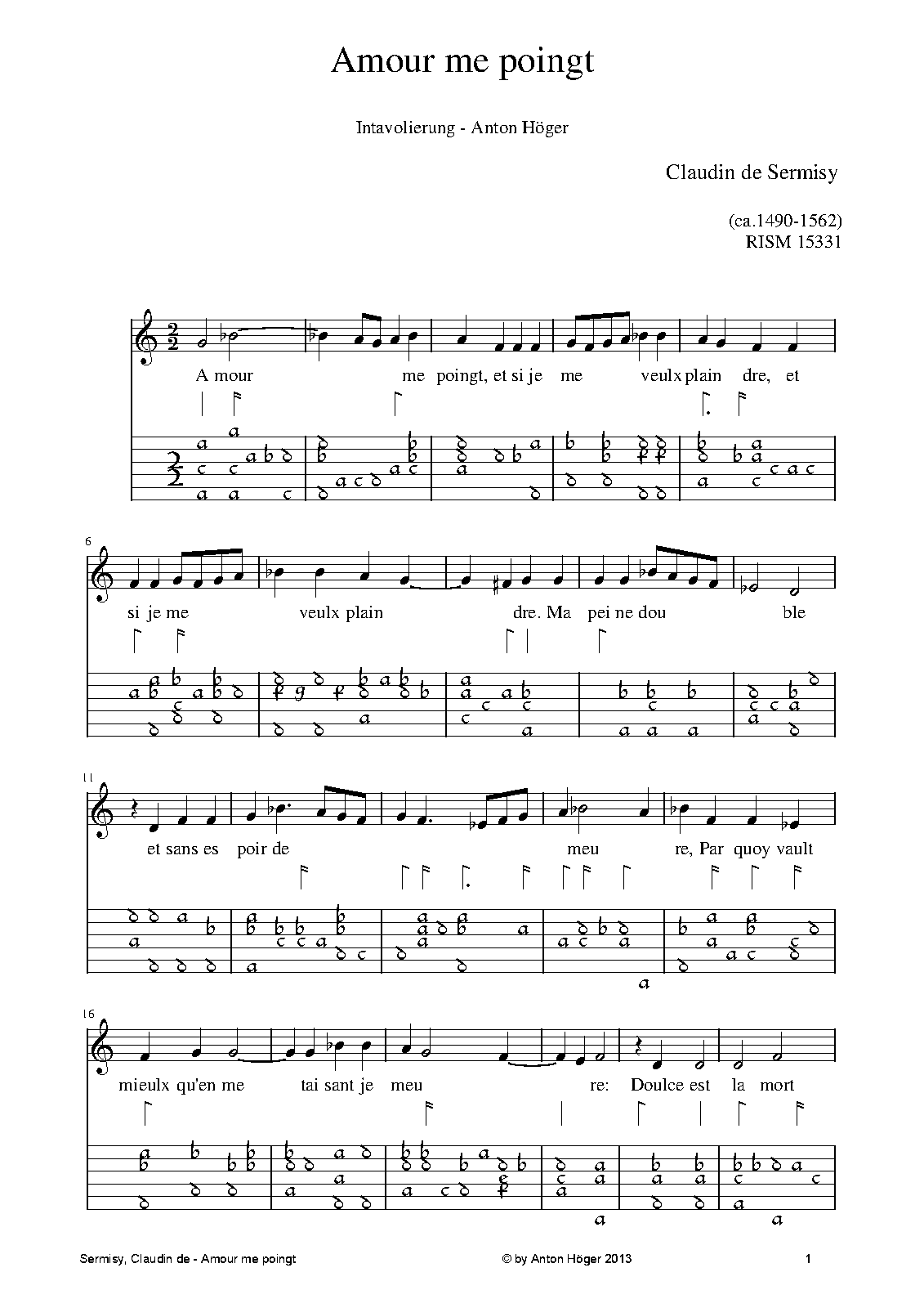 Amour me poingt et si je me veulx plaindre (Sermisy, Claudin de)