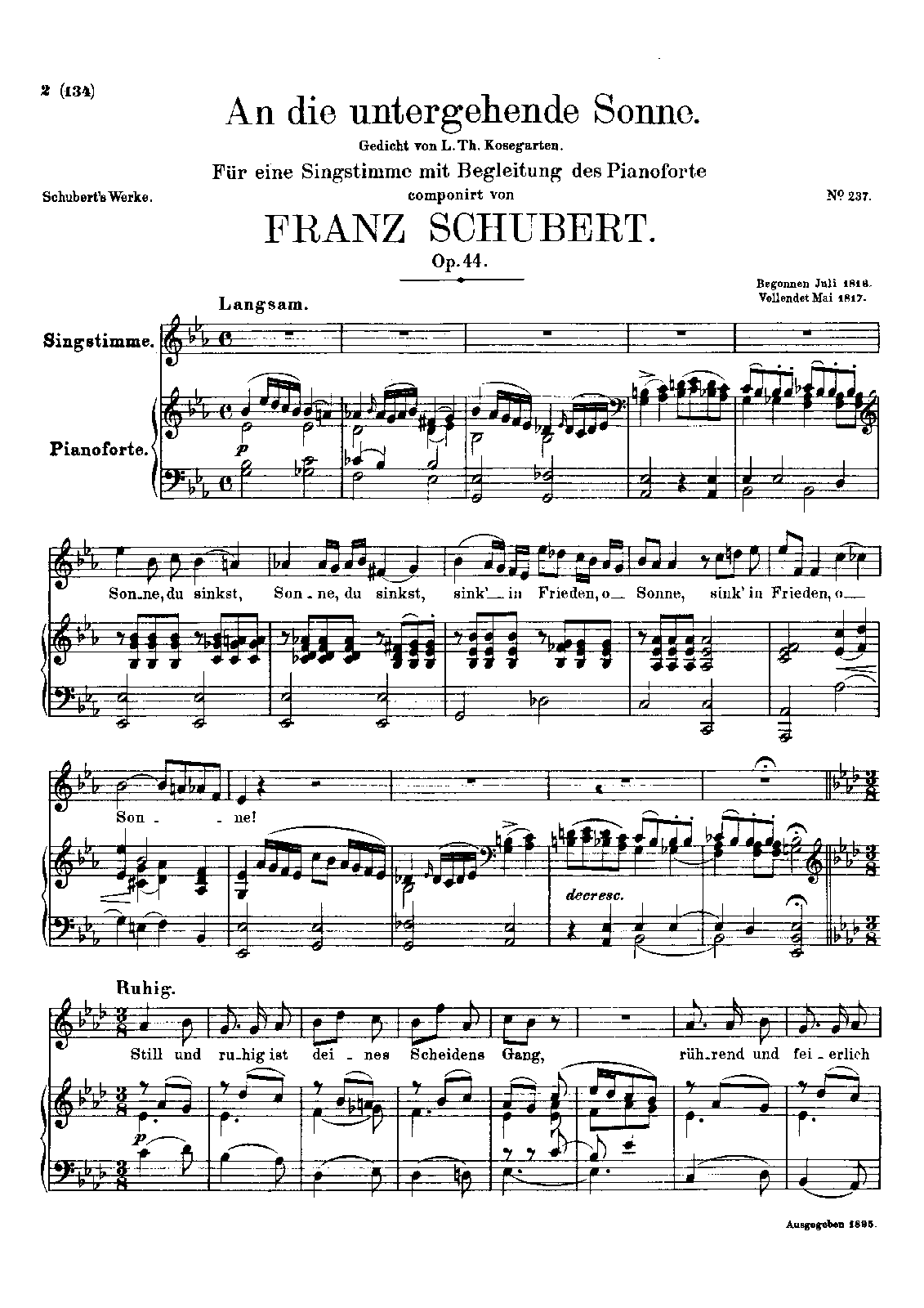 Work Title An die untergehende Sonne, D.457