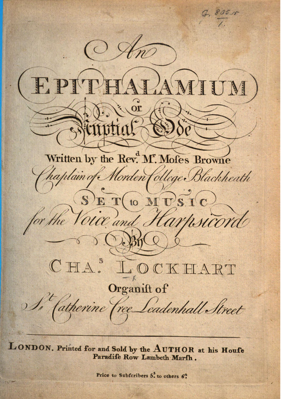 | Alternative. Title | An Epithalamium or Nuptial Ode ... set to music for the voice and harpsicord |