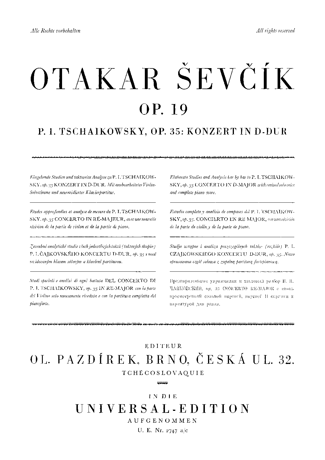 Alternative. Title Elaborate Studies and Analysis bar to bar to P.I. Tschaikowsky, Op.35 Concerto in D Major with revised solo voice and complete piano score, Op.19