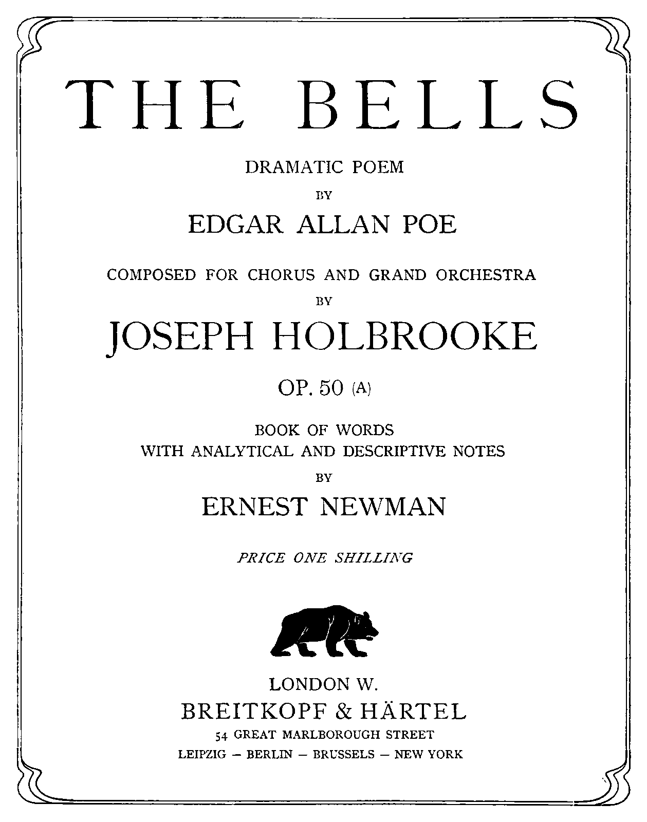 | Alternative. Title | The Bells : Dramatic Poem by Edgar Allen Poe : Composed for Chorus and Grand Orchestra by Joseph Holbrooke Op. 50 (A) : Book of Words with Analytical and Descriptive Notes by Ernest Newman |