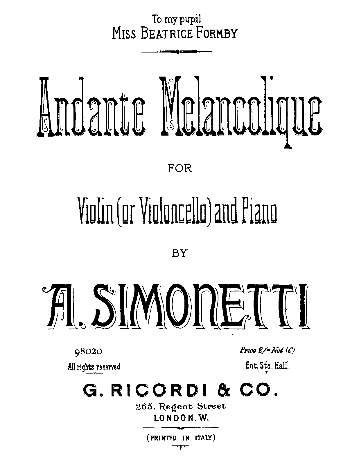 | Genre Categories | Andantes; For violin, piano; Scores featuring the violin; |