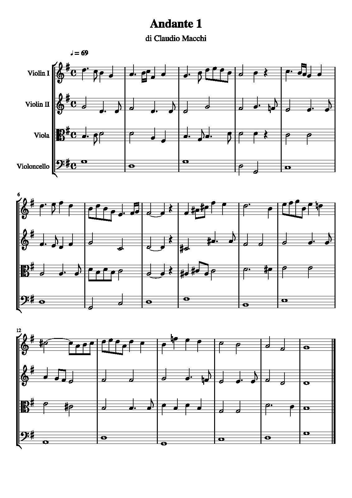 | Genre Categories | Andantes; For 2 violins, viola, cello; Scores featuring the violin; |