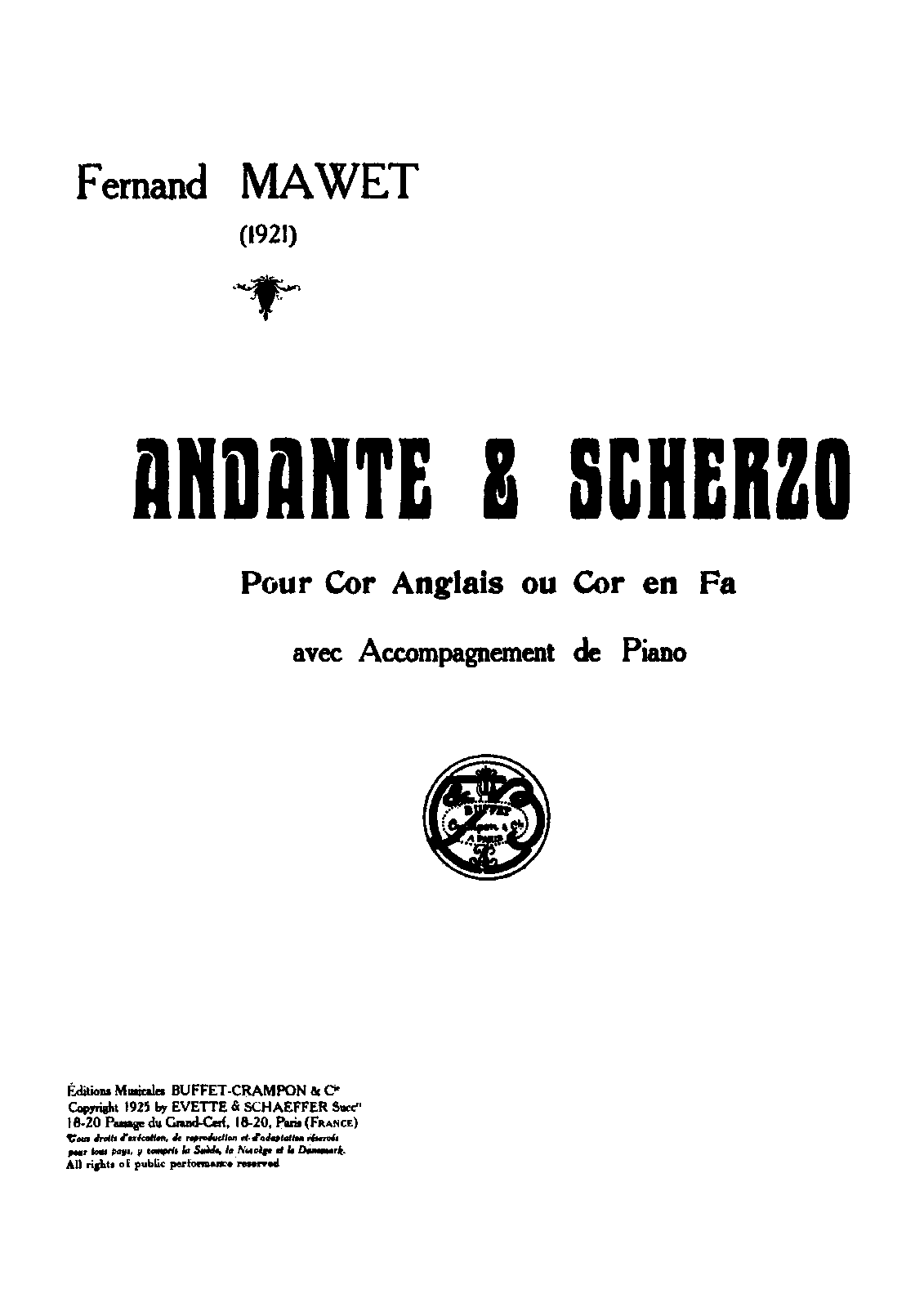 | Genre Categories | Andantes; Scherzos; For English horn, piano; |