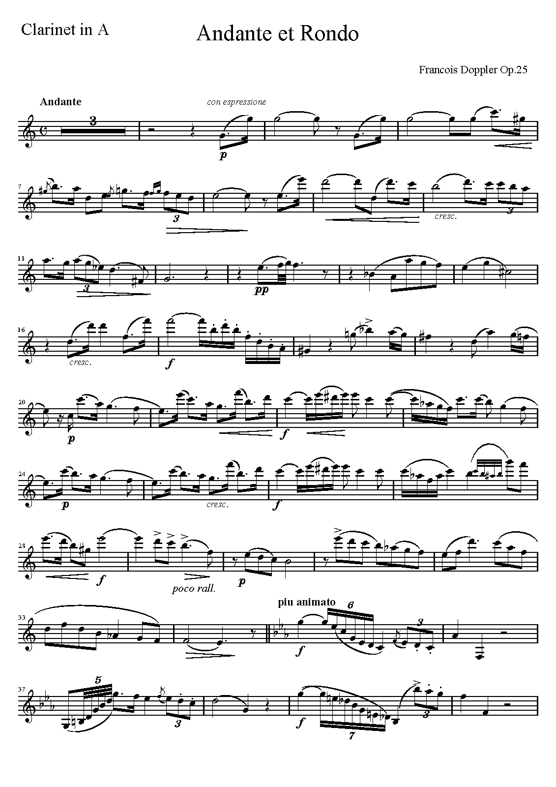 Misc. Notes Flute and clarinet in A (Andante) & Bb (Rondo)
