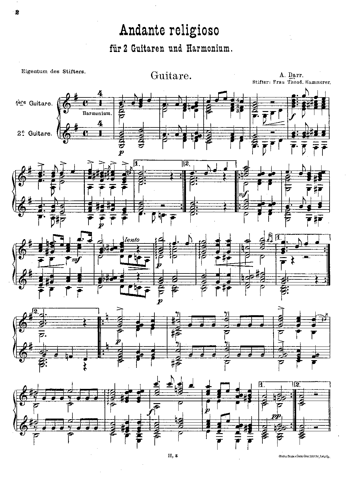 | Work Title | Andante religioso for 2 Guitars and Harmonium |
