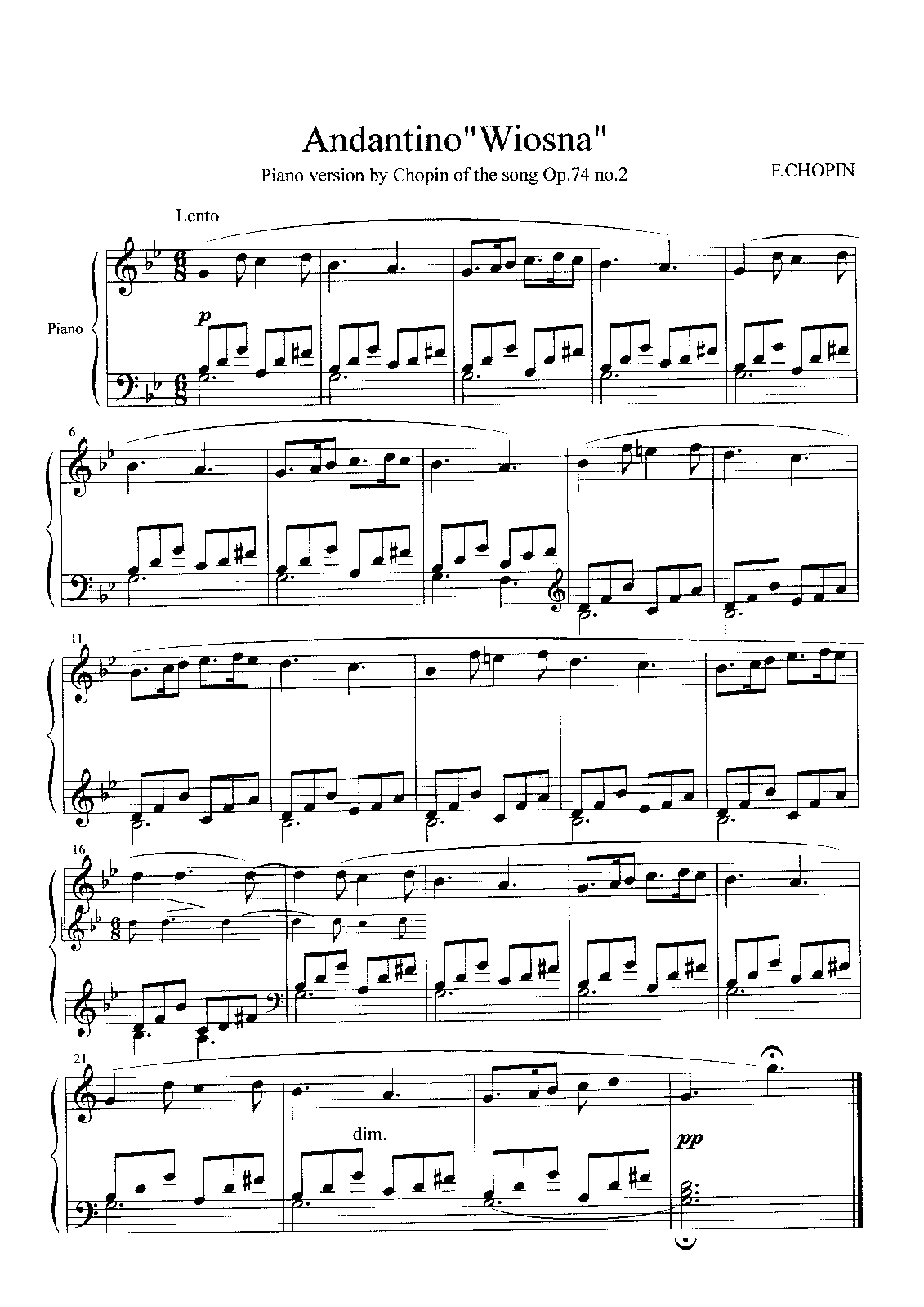 Name Aliases Andantino, piano, B. 117, G minor; Wiosna, piano; Andantino “Spring” in G minor, B. 117