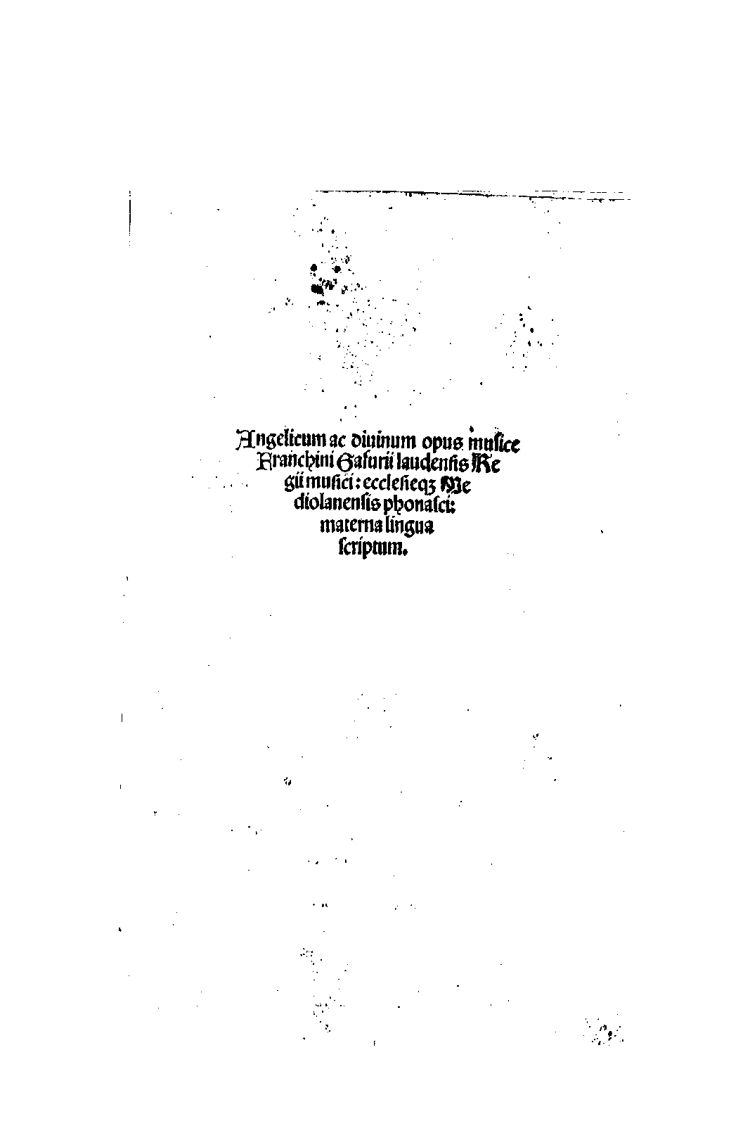 | Alternative. Title | Angelicum ac divinum opus musice Franchini Gafurii laudensis regii musici ecclesieque mediolanensis phonasci: Materna lingua scriptum. |